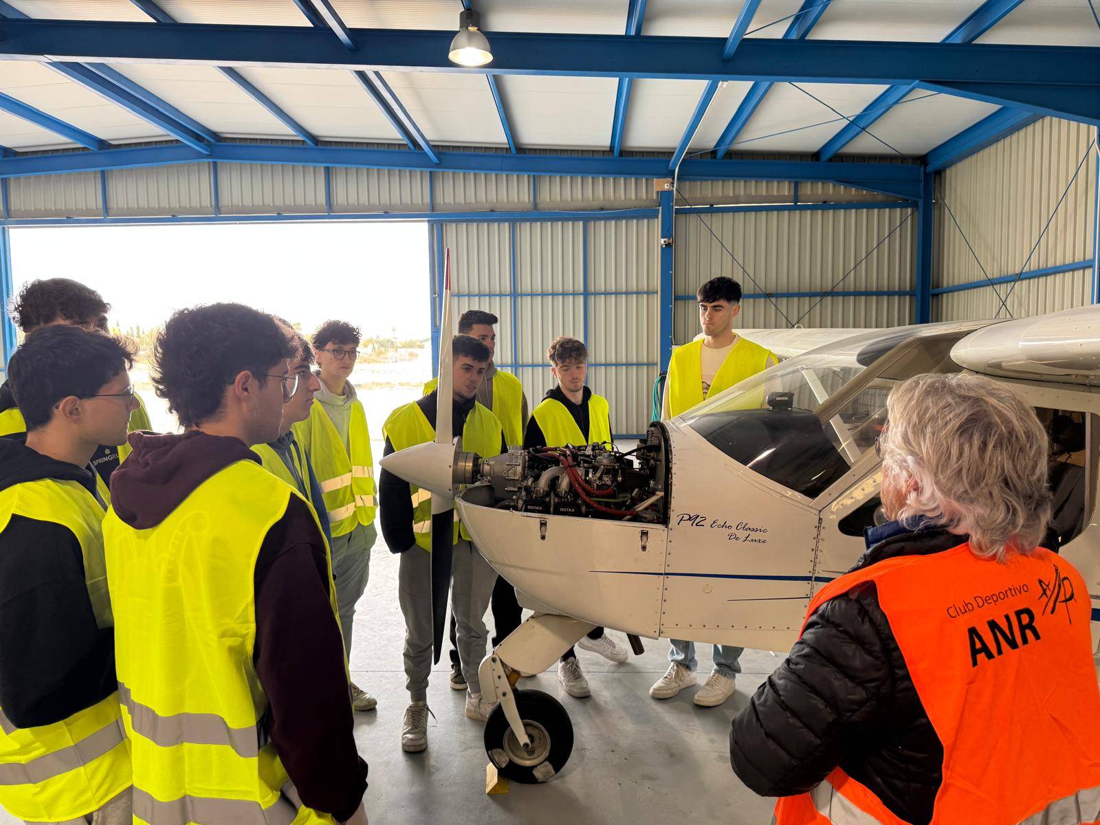 Dentro del programa de la visita, los alumnos pudieron ver de cerca los aviones del Club Deportivo ANR, mientras atendían con gran interés las explicaciones de los socios del club.